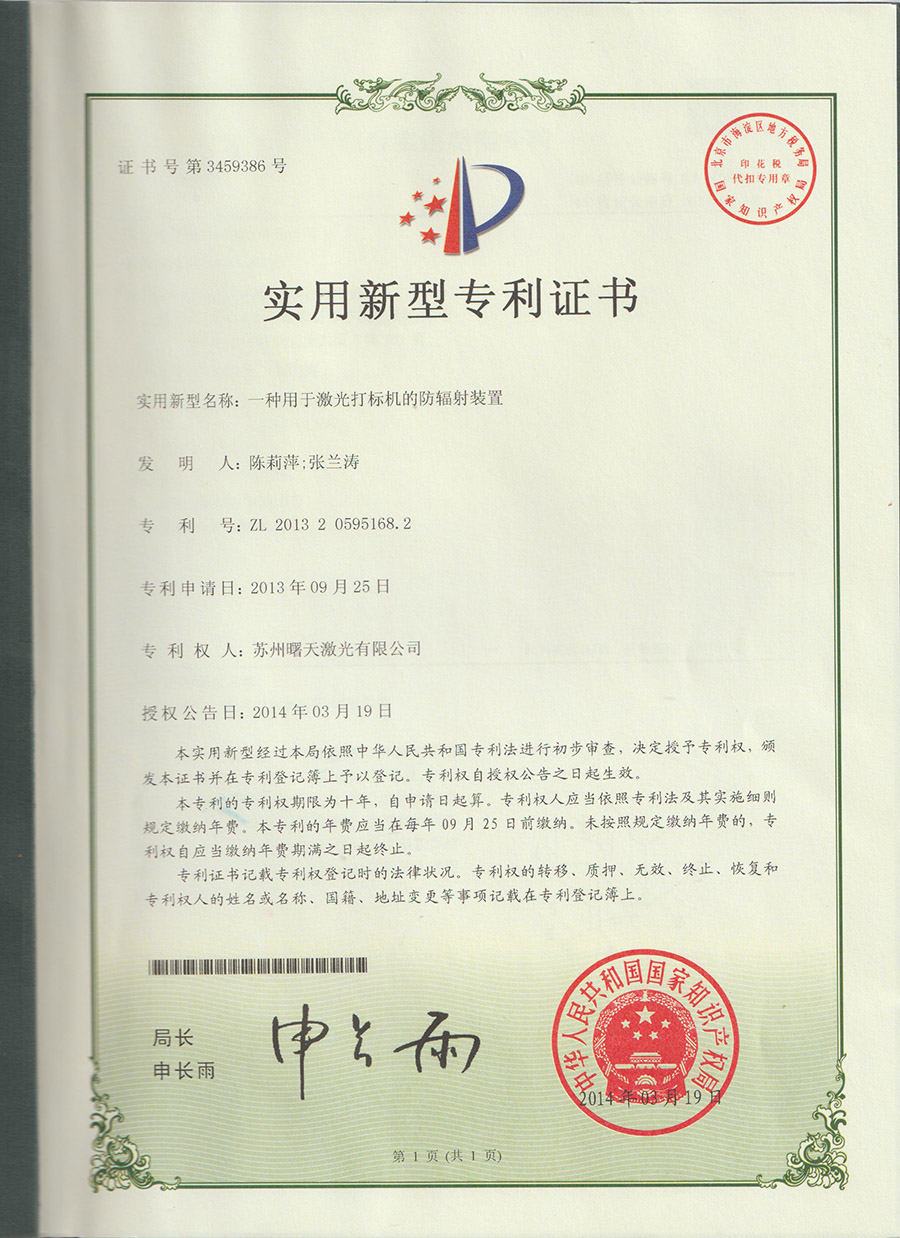 一種用于激光打標機的防輻射裝置專利