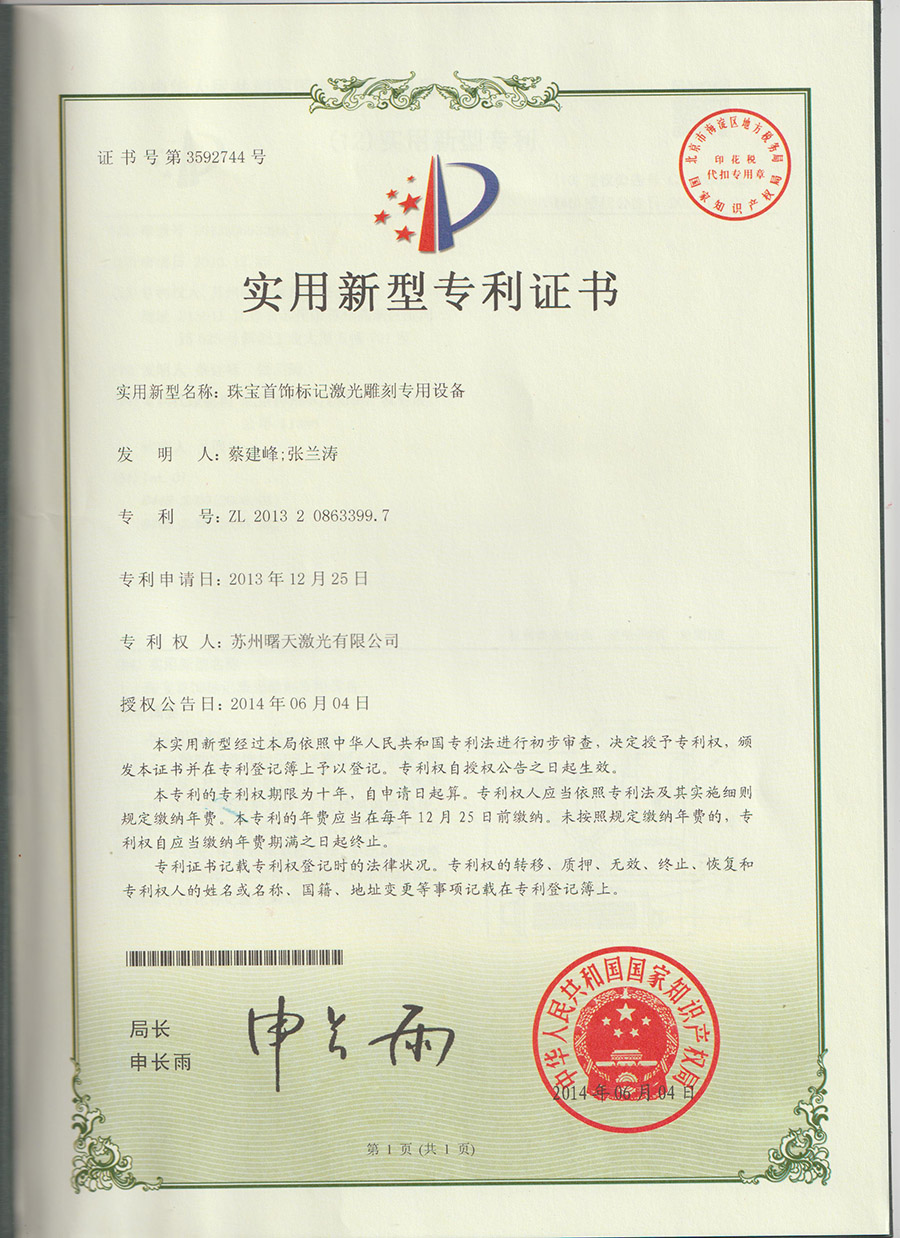 珠寶首飾標記激光雕刻專用設備專利