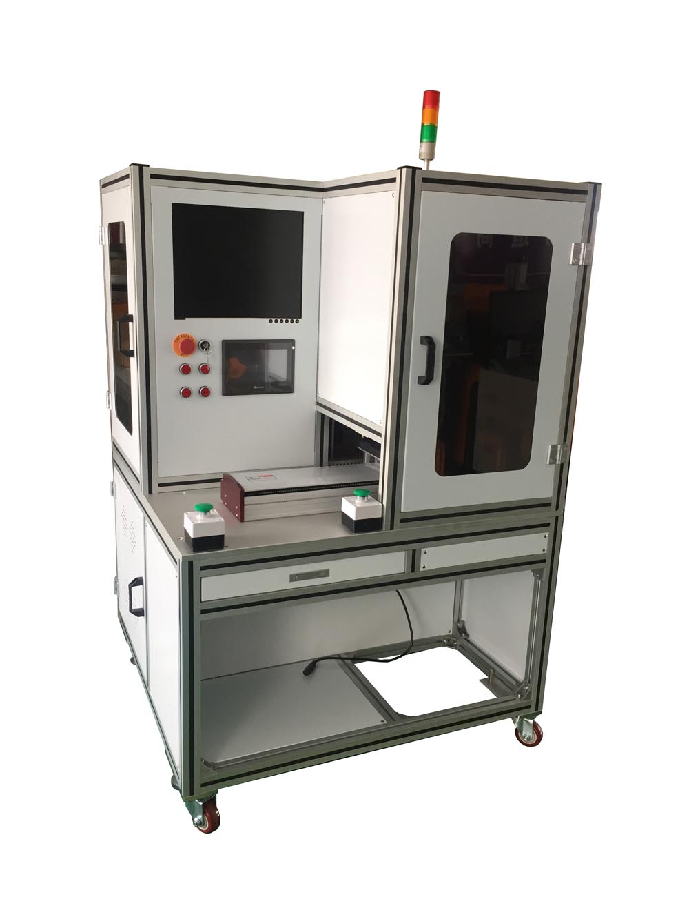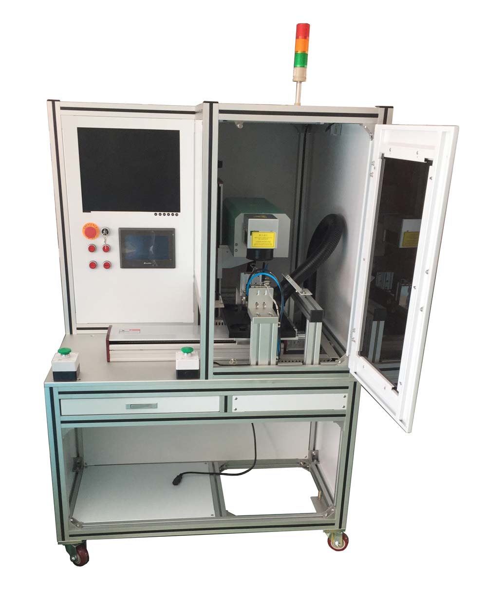 上圖為我司專業為客戶定制的紫外激光打標機,專用于醫療設備打標,配套定制治具,全封閉結構,安全性高。
