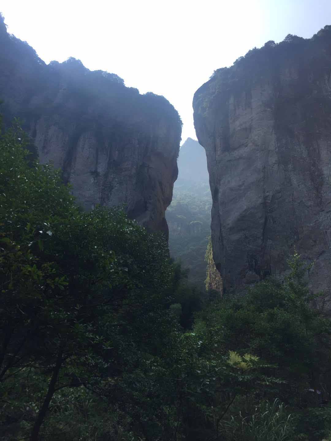 第二日我們首先來到大龍湫,大龍湫以其落差為190余米,為中國瀑布之最,有"天下第一瀑"之譽(yù)。由于我們?nèi)サ臅r候都是晴天,瀑布如珠簾下垂,不到幾丈,就化為煙云。