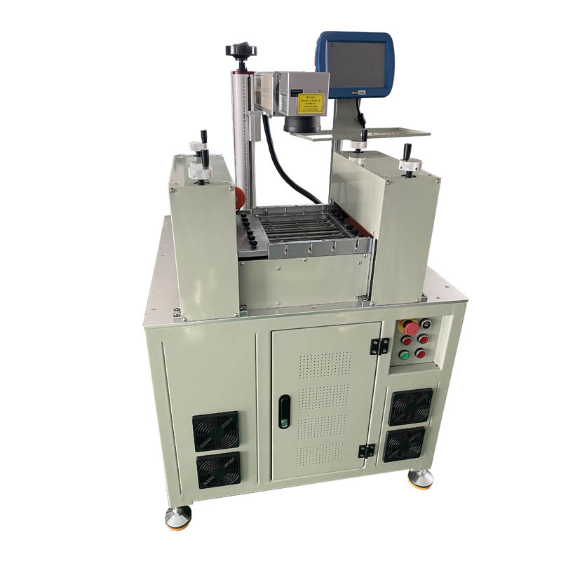 上圖為我司生產的全自動雙頭超高速打標隔熱條專用激光打標機,可同時打標上下兩面。目前已交付客戶處正常使用中。