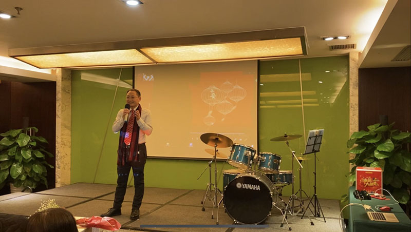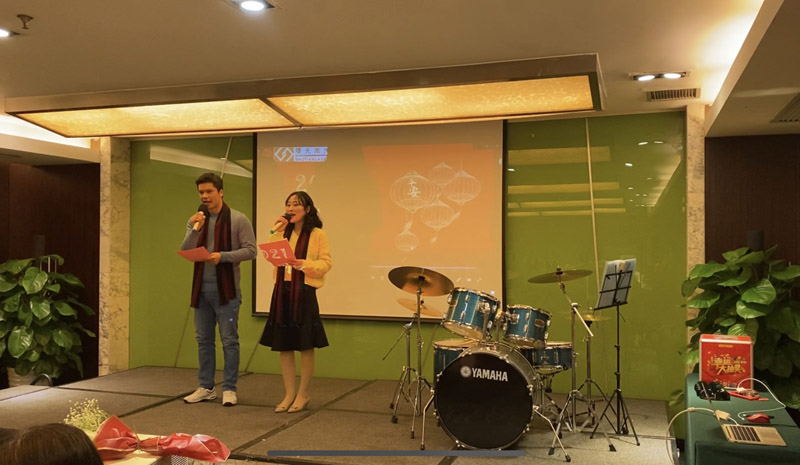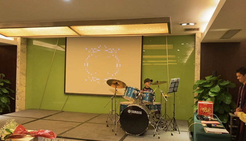 整個晚會氣氛高潮迭起,我們有架子鼓表演,有勁舞嗨歌,有爆笑游戲,整個宴會大廳仿佛一座歡樂的海洋。